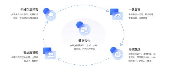 艾客由广州壹豆网络科技有限公司开发,于2015年上线。具备引流裂变、私域留存、数字运营、精准营销功能模块,适用于电商、零售、教育、医美等行业的客户。