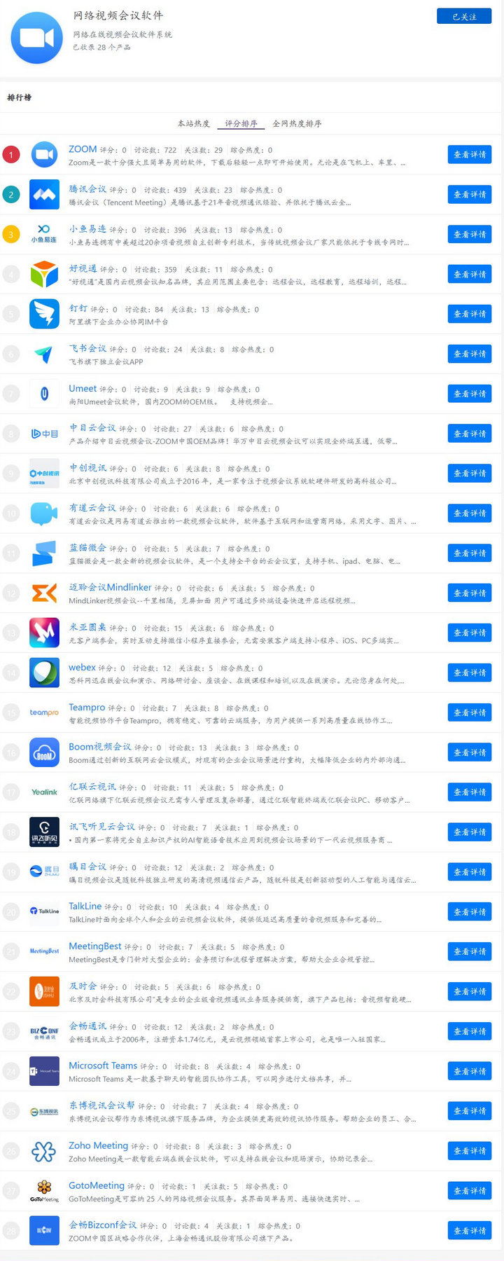 除了zoom,我们SaaS点评网还收录了许多好用的视频会议软件,以下是榜单排行,大家可以多关注一下。