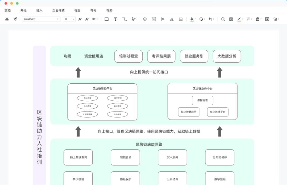 1)简单易用:该软件采用了直观的拖拽式操作,用户只需将所需的图形元素拖拽到画布上,然后调整其大小和位置即可完成绘制。此外,软件还提供了丰富的模板和符号库,用户可以直接使用这些模板和符号来快速创建出专业的图形。