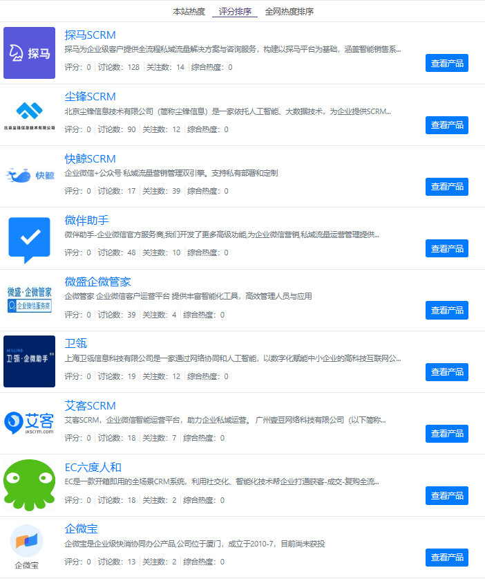 除了以上三个系统外,SCRM的同类竞品还有许多,具体榜单如下,供您了解更多信息~此外,我们跟各个国内主流SCRM软件都有合作,您可以通过我们企服商城购买软件,不论新购续费,都有优惠福利噢~