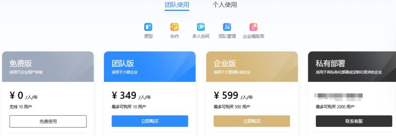 墨刀提供免费版和付费版,付费版分为团队和个人,下面以团队为例,介绍具体价格: