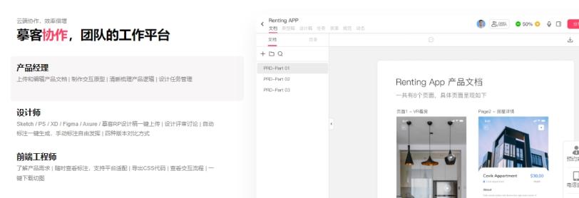 摹客:摹客是近几年新兴的国产原型设计工具,2018年09月10日成立,专注于B端产品设计开发的设计+一站式协作设计平台。
