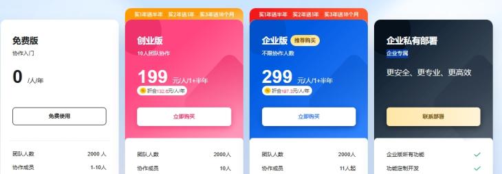 私有部署:最多可购买 2000 用户,具体价格可咨询我们的选择顾问。