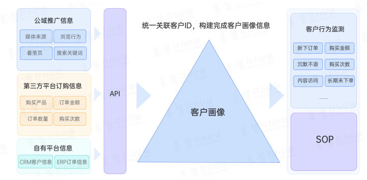 · 订购信息对接:通过对接淘宝、京东、微盟等第三方电商平台,抓取购买产品、数量、金额等订购信息对接到企微,进一步完善客户画像。