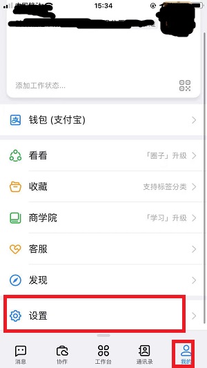 2.在【我的】菜单界面中,可以看见自己的基本信息,包括公司内容等,找到设置按钮;