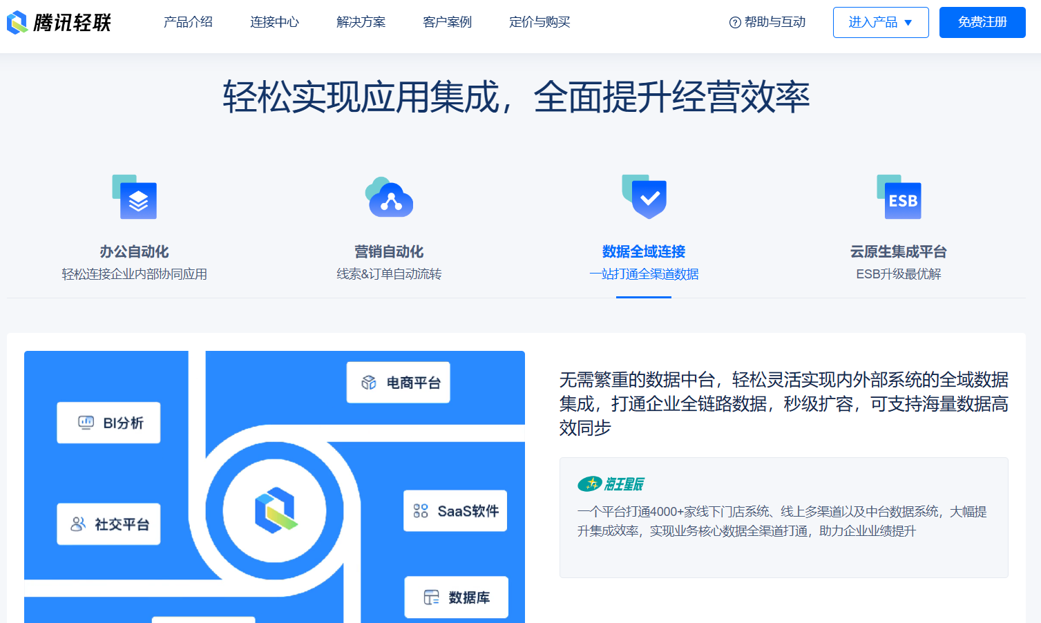 数环通以最简单直观的高效连接方式,为企业低成本解决数据孤岛和应用协同问题,帮助企业解决数据流转和应用集成多带来的效率低下问题。安全可靠,稳定高效,解锁企业数智化的效率提升。独特之处在于:数环通无需IT和开发人员帮助,全流程无代码搭建,只需要您点点鼠标,即可快速实现应用连接与超自动化。目前,数环通已推出近百款应用连接器,涵盖营销工具、协同办公、电子商务、即时通讯等14个领域。