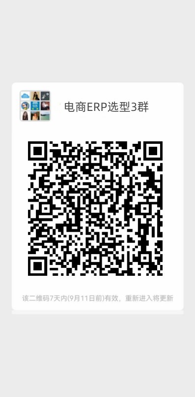扫码下方二维码免费加入电商ERP选型采购交流群,里面有专业的顾问答疑。