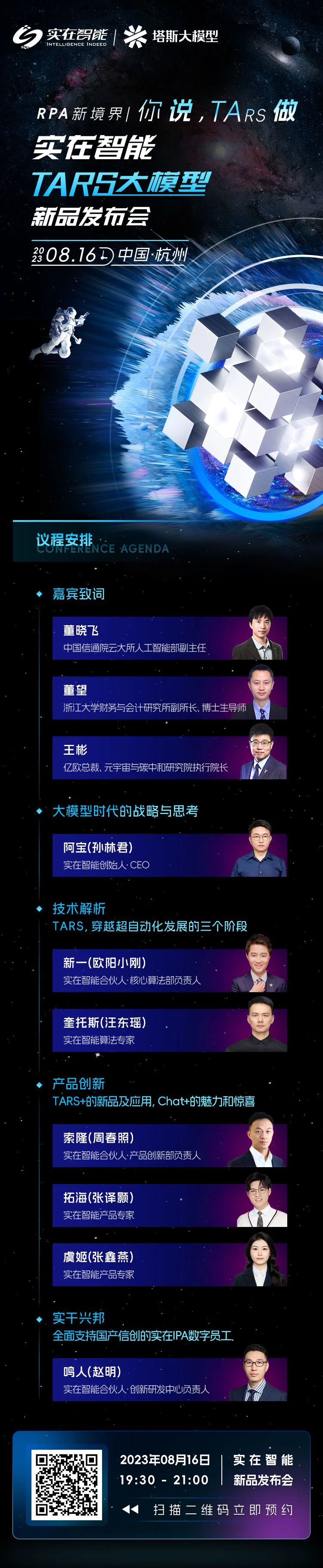 实在智能的塔斯大模型即将在2023年8月16日召开发布会发布,本次发布会的主要内容是推出实在智能的自研垂直领域大语言模型——TARS(塔斯)。(以下为搬运官网)