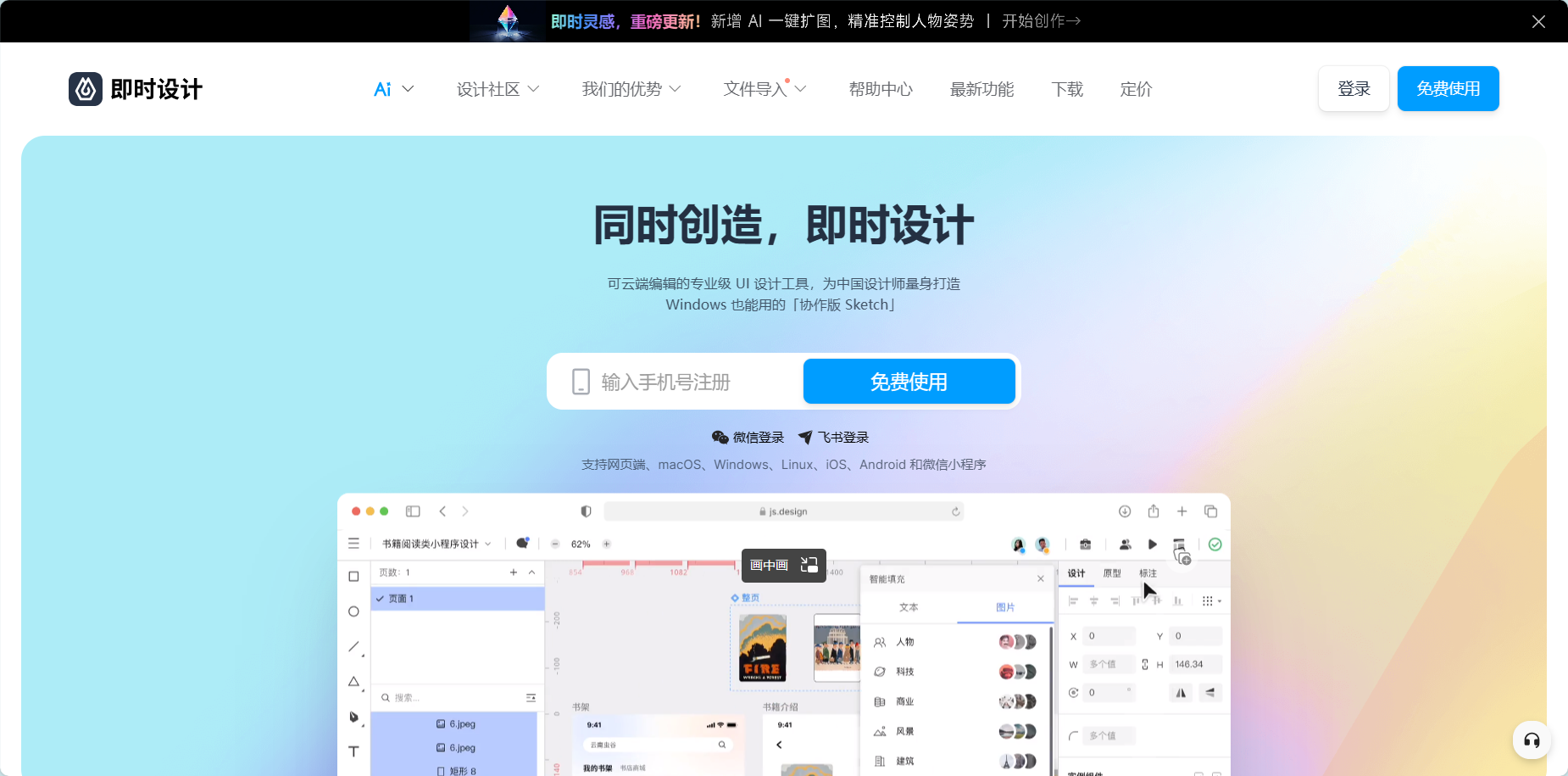 即时设计是对标于figma。即时设计是一款在线可协作的UI设计工具,即时设计拥有海量的设计资源与素材,支持导入sketch格式的源文件。支持创建交互原型、获取设计标注、快速切图等功能。操作时比较流畅,随时保存的性质,不会出现忘记保存的问题,且还可以回溯之前保存的版本,用于对比。