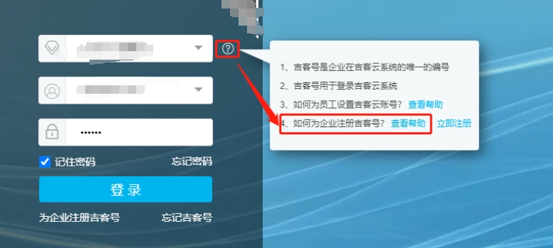 2、如何为企业注册吉客号并登录吉客云?点击下图所示弹窗处“查看帮助“,根据视频教学注册吉客号后进行登录即可。