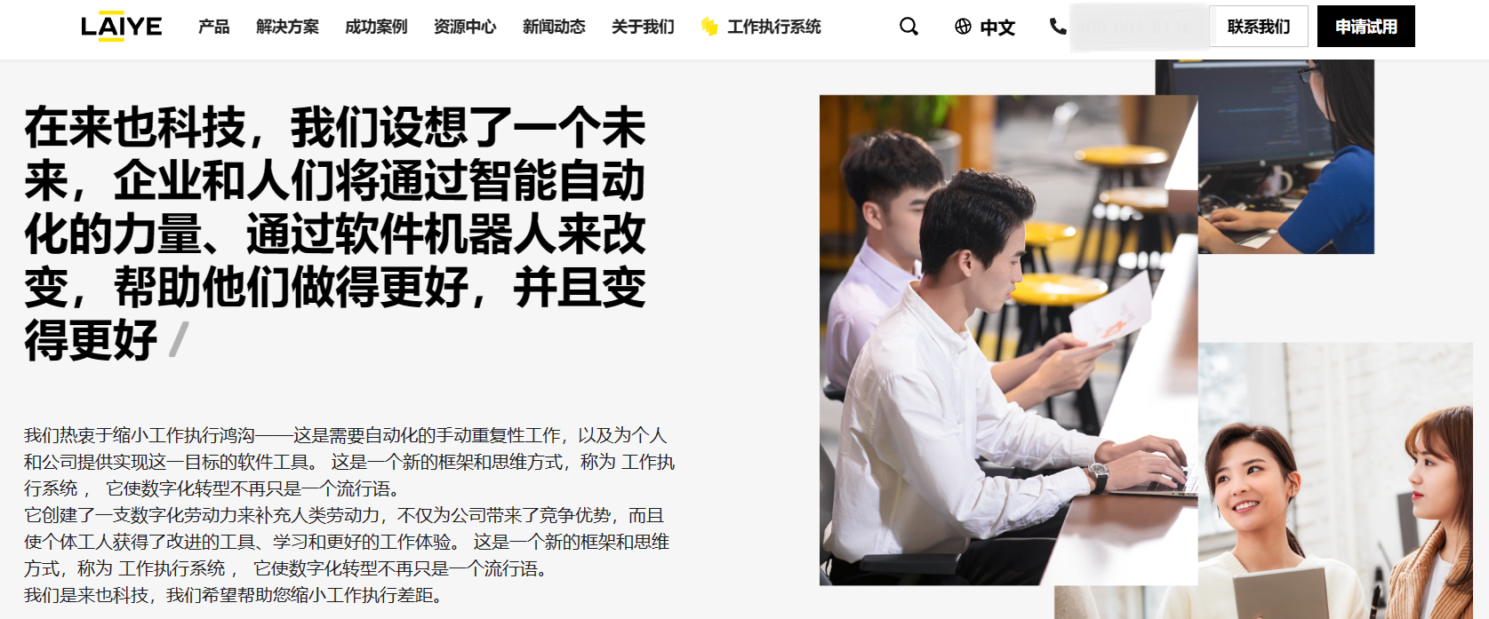 5)来也拥有UiBot团队为企业和个人提供专业、全面、安全、可靠的机器人流程自动化解决方案。UiBot平台搭建的机器人,可模拟人在计算机上的操作,按照一定的规则自动执行任务,如处理邮件和文档,大批量生成文件和报告,进入CRM系统执行特定任务等。