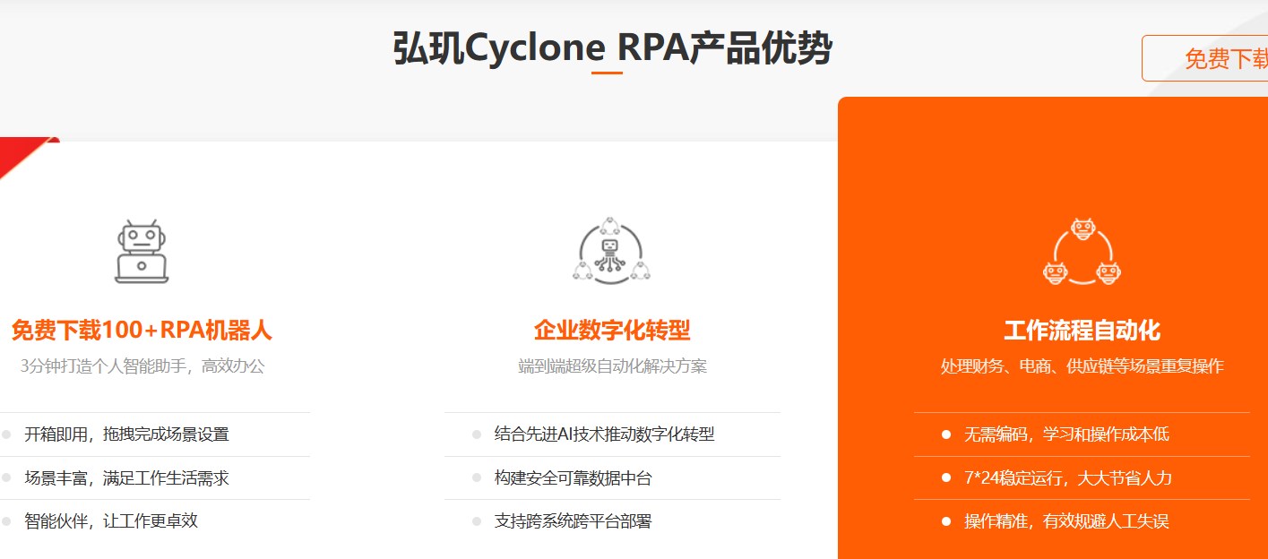 4)弘玑Cyclone,即弘玑Cyclone数字员工RPA的简称,弘玑Cyclone数字员工RPA不只是一种软件产品,而是与人工智能融合并具有自身独特人工智能属性的面向各行业的RPA(机器人流程自动化)软件平台。