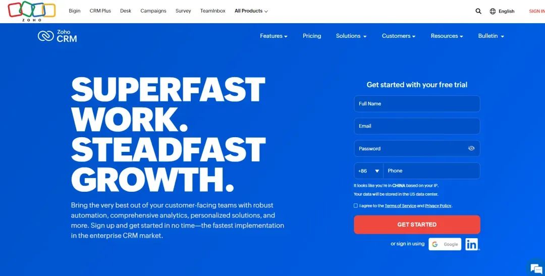 Zoho公司提供一系列综合性办公软件和工具,其中Zoho CRM是其专注的客户关系管理解决方案。Zoho CRM提供了全面的客户信息管理、销售管道跟踪、客户服务等功能。